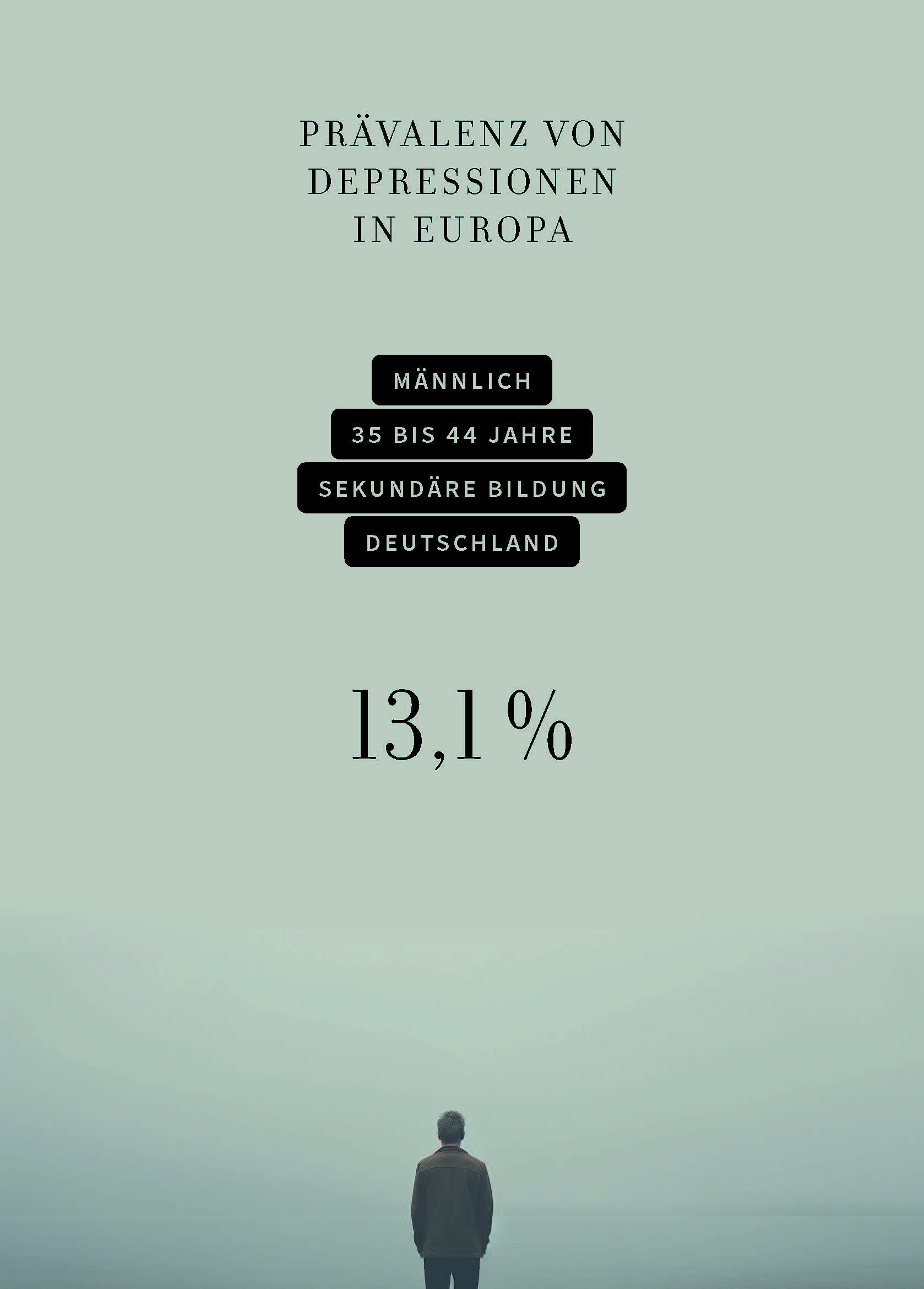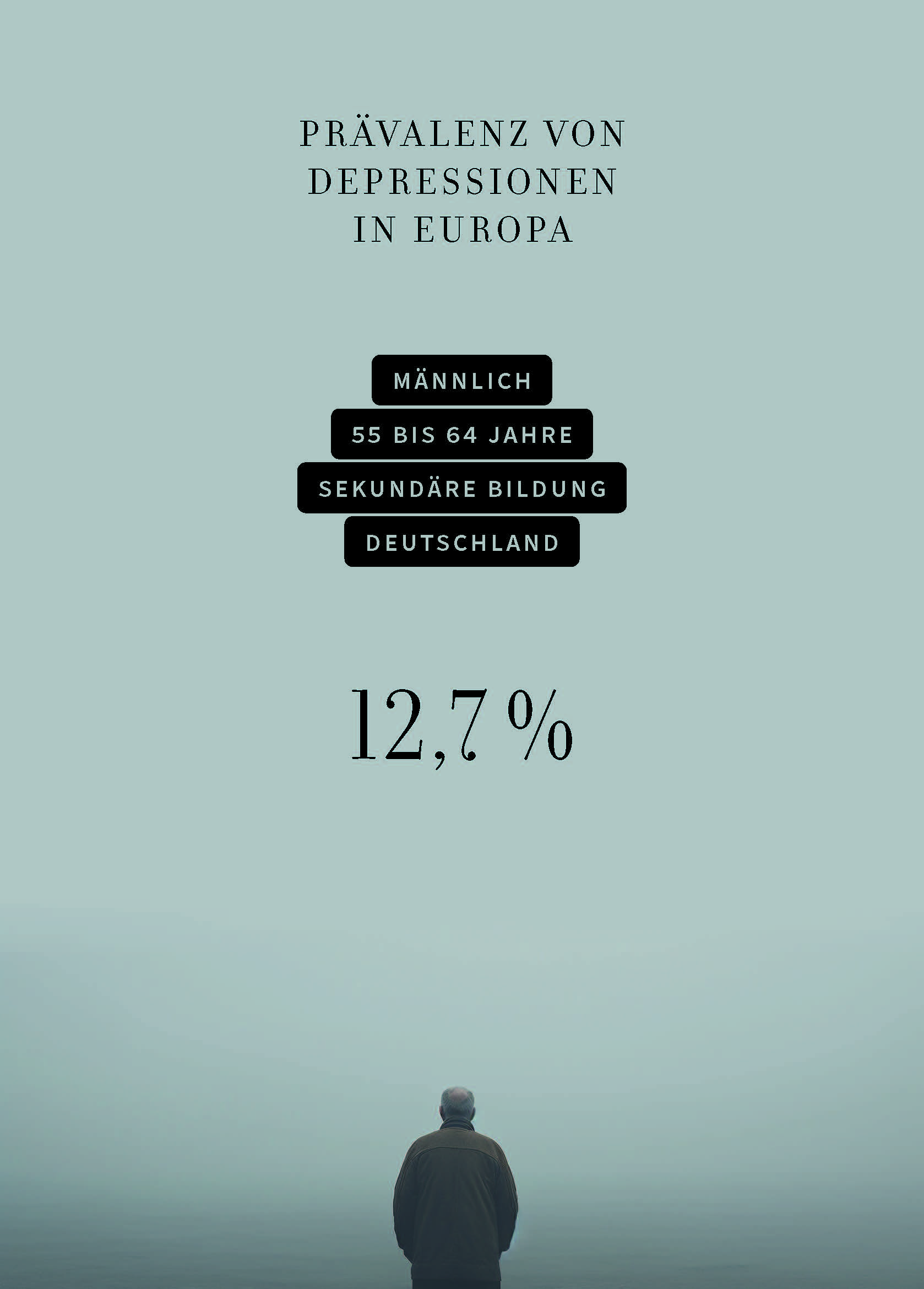 Im Mittelpunkt der explorativen Designstudie steht eine gemeinsam entwickelte und veröffentlichte Visualisierung der Prävalenz von Depressionen in Europa, also die gesamte Anzahl der Krankheitsfälle im betrachteten Teil der Bevölkerung zu einem Zeitpunkt oder während eines bestimmten Zeitraums. Alle Angaben beruhen auf den Daten des European Health Interview Survey (EHIS), einer Gesundheitsumfrage in allen EU-Mitgliedsstaaten sowie einigen anderen europäischen Ländern im Jahr 2019. Die Befragten gaben darin an, ob sie in den vergangenen 12 Monaten an einer Depression gelitten oder verschiedene Symptome der Krankheit bei sich beobachtet hatten.